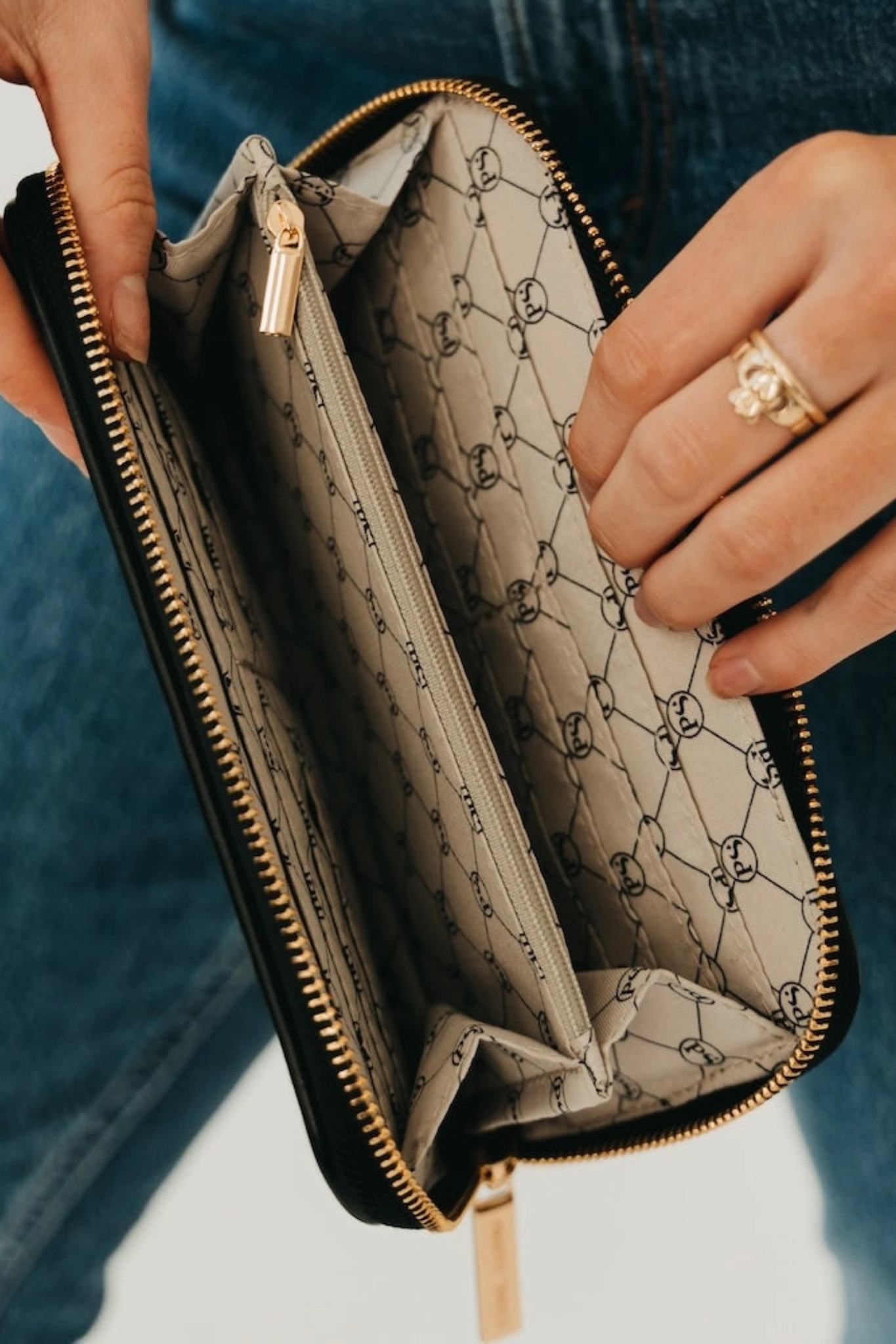 Lenni Large Zip Woven Wallet - Black
