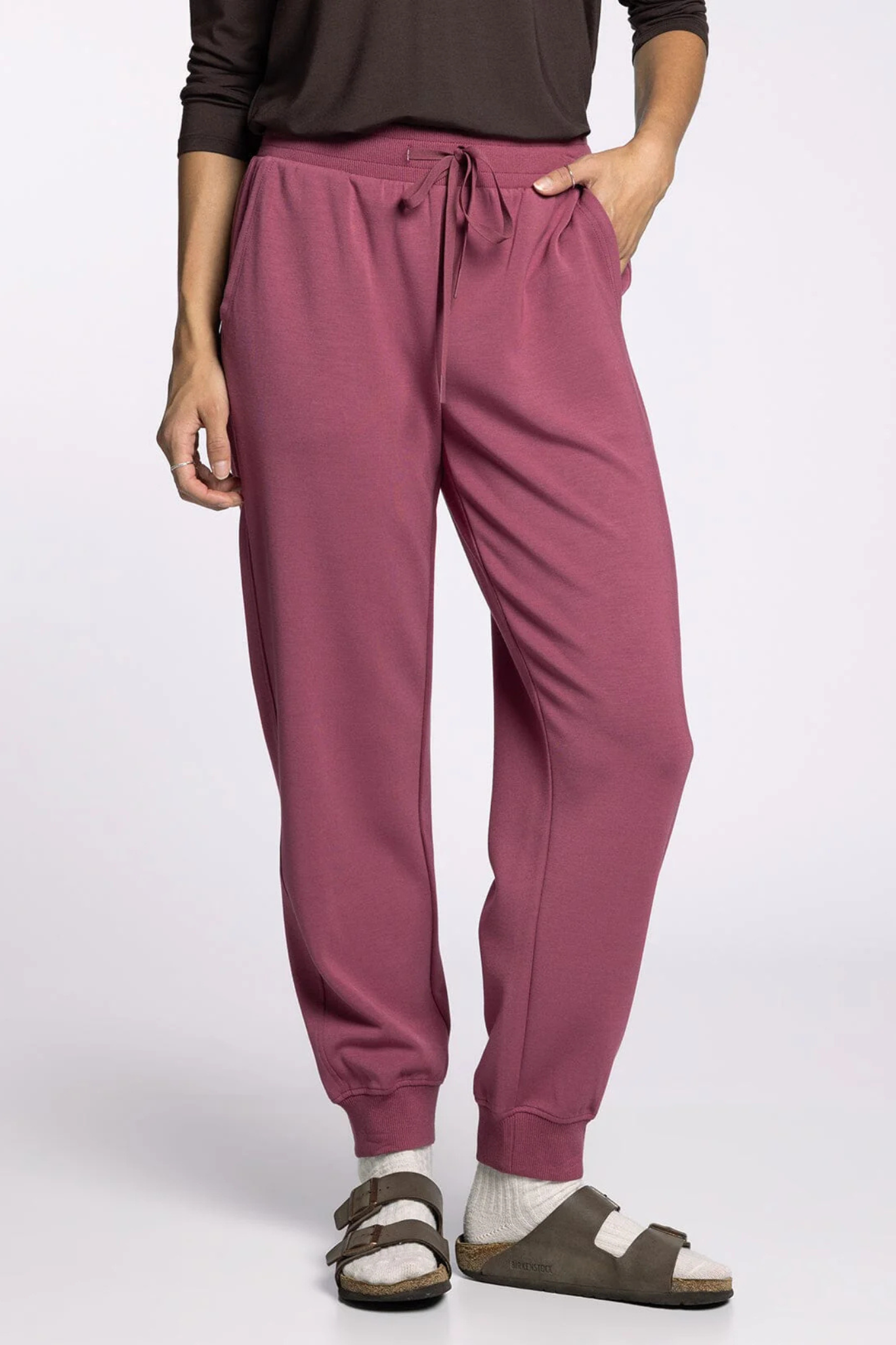 The Caroline Jogger in Vintage Rose brings together comfort and effortless style in the prettiest pink-berry hue. Designed with a soft elastic waistband and adjustable drawstring for the perfect fit, these joggers feature convenient side pockets and a relaxed silhouette made for all-day wear. Crafted from an ultra-soft modal blend with added stretch, they offer a lightweight, breathable feel that moves with you — perfect for lounging, running errands, or pairing with your favorite casual layers for an elevated everyday look.