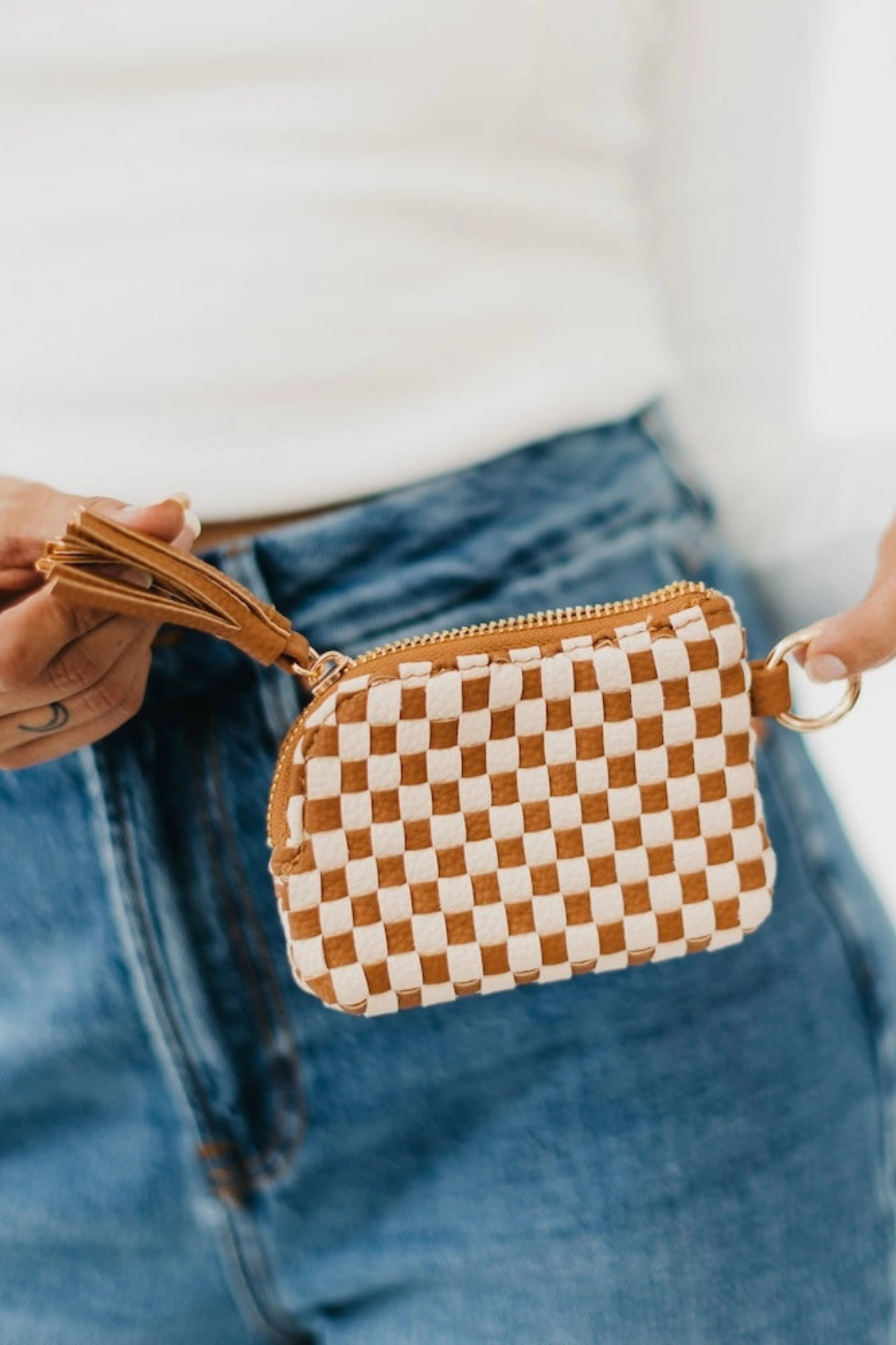 Introducing the Paris Wallet - your new go-to accessory! This everyday wallet is crafted with durable pebbled and woven vegan leather. You can either keep your Paris inside your favorite Pretty Simple bag, or clip it onto a bag with the O-ring that's on the side of the wallet. With all the room inside, you are sure to keep your valuables secure and stylish with the Paris!
