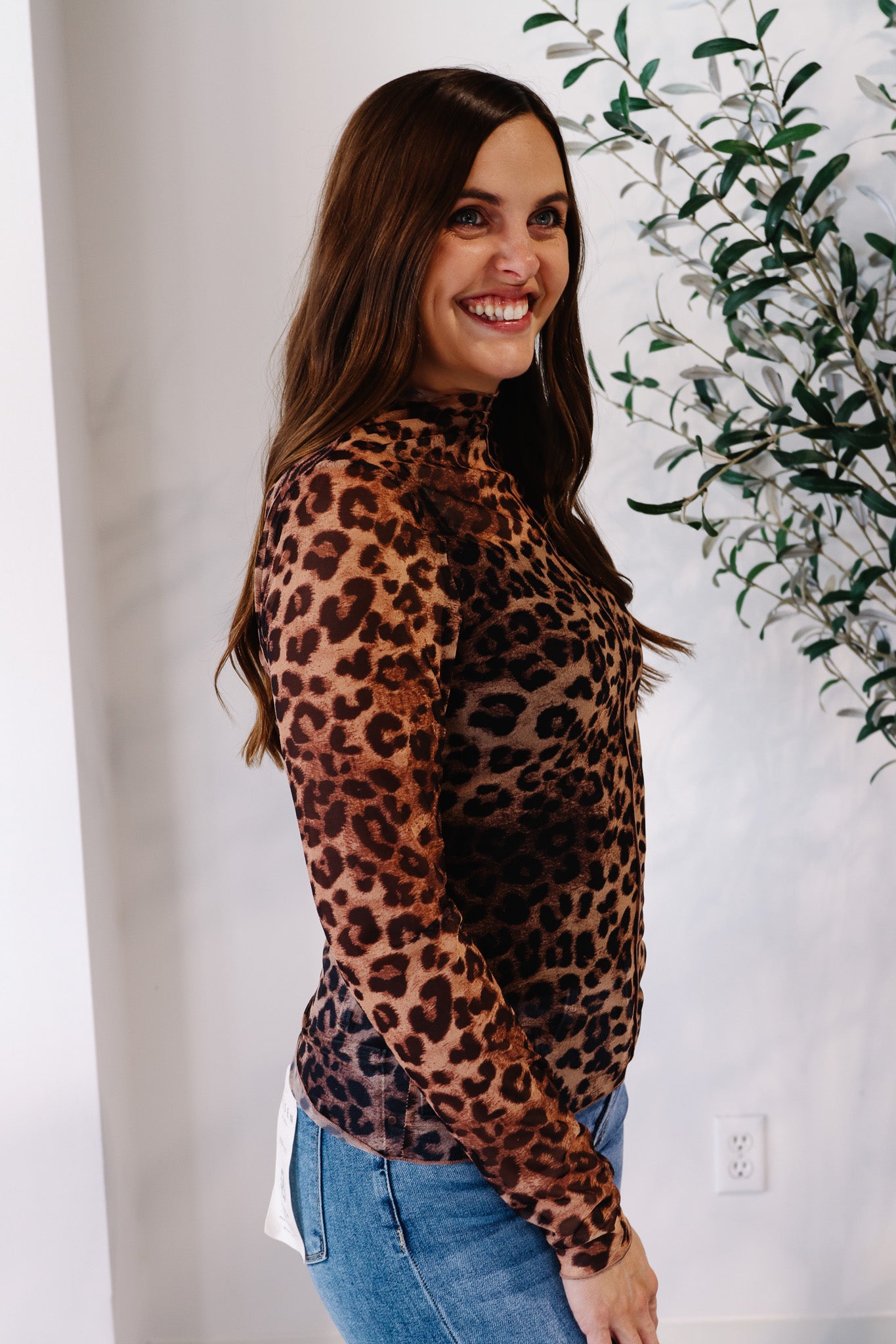 Lanna Leopard Mesh Mock Neck Top